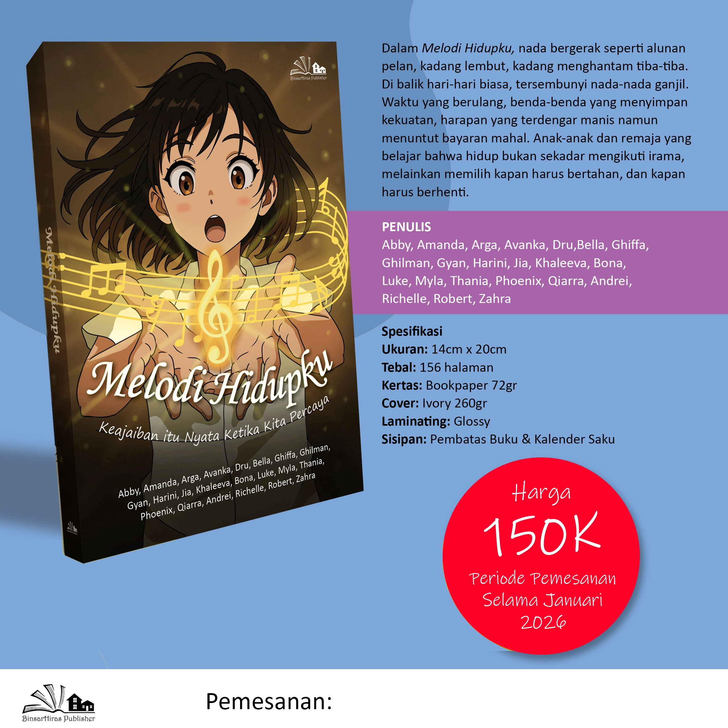 Sebuah antologi cerita reflektif yang mengangkat kehidupan anak-anak dan remaja sebagai ruang pembelajaran emosional yang kompleks. Melalui metafora nada, irama, dan melodi, buku ini menyingkap realitas bahwa hidup tidak selalu berjalan selaras—kadang lembut, kadang menghantam tanpa aba-aba.
